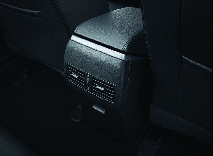 Задний диван может похвастаться большим пространством, которого вполне хватит для высоких людей. Посадка на задние сиденья практически не доставляет неудобств. Благодаря свободному пространству, на заднем диване будет весьма комфортно сидеть. Для большего удобства имеется центральный подлокотник с подстаканниками, а на центральном тоннеле между передними сиденьями имеется два дефлектора и полноценная розетка на 220В. Хоть задний диван и расположен высоко, это ничуть не мешает удобству. Пространства над головой хватает с лихвой.